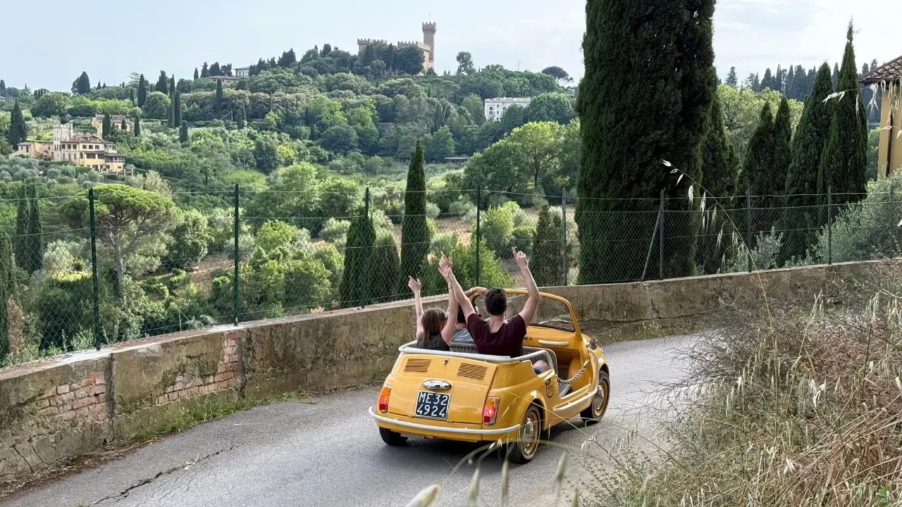 Chase Florence’s skyline in a vintage electric Fiat 500 cabrio—iconic viewpoints, scenic hills, and dreamy photo stops, all private.
