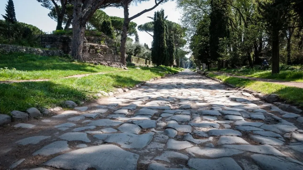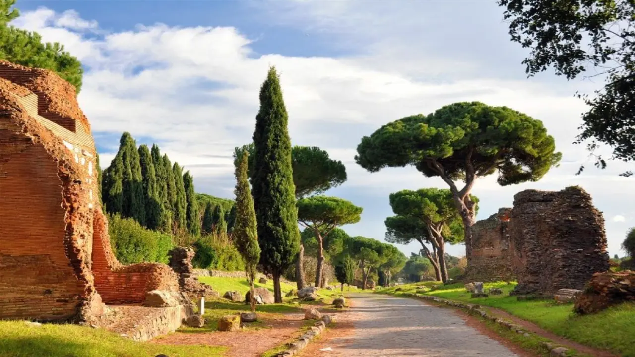 Scenic drive along the Appian Way, passing ancient landmarks